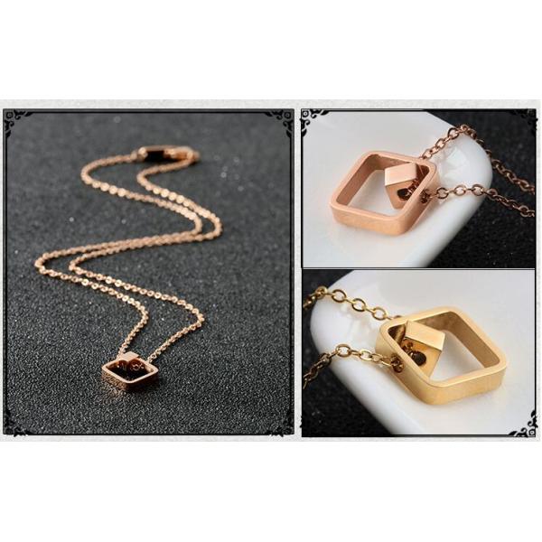 Square Pendant Necklace , Fashion Jewelry Double Ring Pendant, 18K Gold Necklace with China Images |